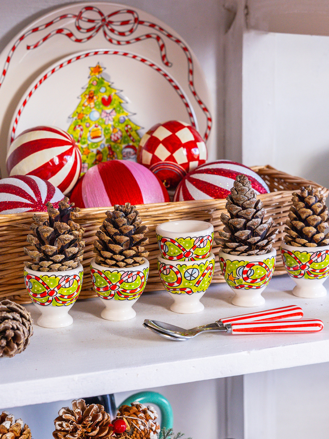 Een perfect gekookt eitje smaakt net iets beter uit een Blond eierdopje. Deze versie met voetje uit de kerstcollectie is versierd met een vrolijke strik, speelse stippen en natuurlijk een kerstboom vol lichtjes. Alles in die herkenbare Blond stijl. Of je nu de tafel dekt voor een uitgebreid kerstontbijt of gewoon zin hebt in een doordeweeks feestje aan tafel, deze eierdop geeft je ochtend een frisse start. En nog leuker: je kunt ‘m perfect combineren met de andere items uit de kerstlijn. Denk aan bekers, borden, schalen of textiel. Zo maak je je kersttafel helemaal eigen.